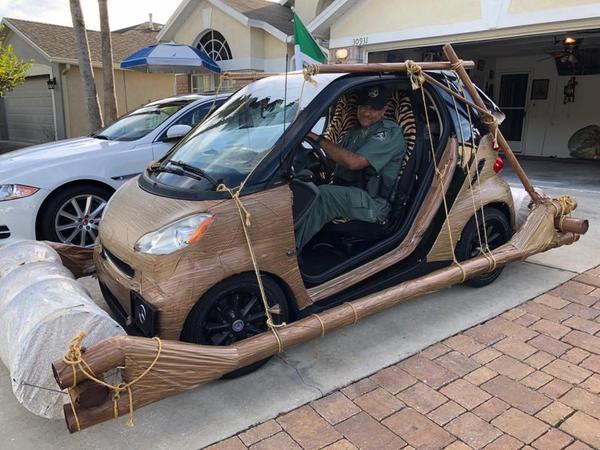 Don Swartz had transformed his Smart into a very detailed version of Fred Flintstone’s “footmobile.”